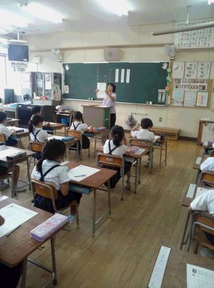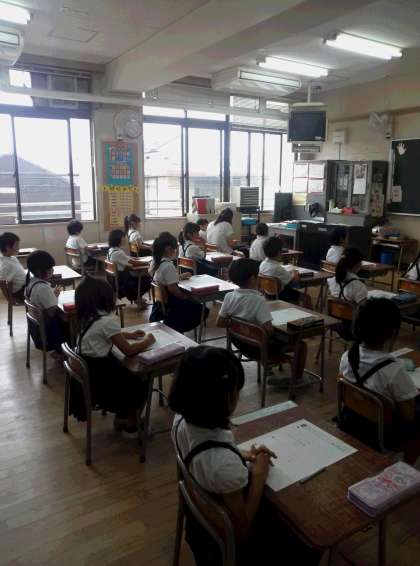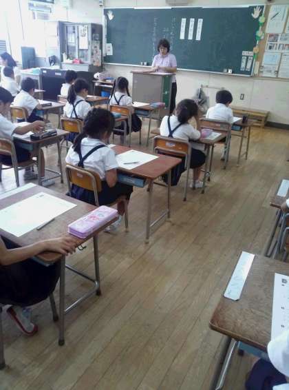 算数テストの時間です。始める前に、先生のお話です。みんなしっかりと聴いています!(^^)!