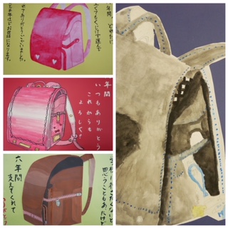素敵な掲示物というと、先日、6年生の授業を観に行った時に目にとまった「ランドセル」があります。図工の作品です。一人ひとりが自分のランドセルに6年間の感謝の言葉を添えていました。きっとランドセルさんはうれしくて温かな涙を流していると思います。