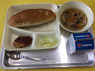 今日の給食は トンカツのオーロラソースかけ(マグロのオーロラソース煮から変更) スープ あっさりキャベツ おさつパン 牛乳 の献立でした。保護者メールでお知らせしたとおり、食材のマグロの調達が諸事情により難しくなり、献立が変更されています。マグロは楽しみでしたが、これはこれで美味しいです。