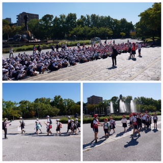 この2年間、コロナ禍で実施できなかった全校遠足が、ようやく実施できました。久しぶりです。申し分のない秋の晴天。思っていたよりも少し暑いですが、気持ちの良い秋の遠足になりました。たてわり班で順に園内のオリエンテーリングに出発です。6年生が頼りになるお兄さん、お姉さんになっています。頼もしいです。
