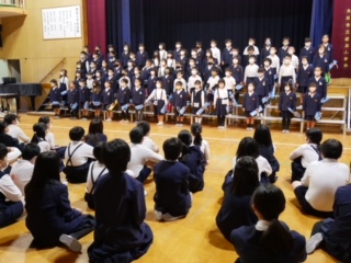 今日は最後の練習日。全体リハーサルの反省点を生かし、各学年ともより良い発表に仕上げようと頑張っていました。写真は2年生の学年練習のようすです。5年生がそのようすを鑑賞していましたが、よそ見をしている子もしゃべっている子もふざけている子もいっさいいません。温かな眼差しで集中して鑑賞していました。拍手にとても心がこもっていました。素晴らしい鑑賞態度でした。2年生はきっと励まされたことと思います。