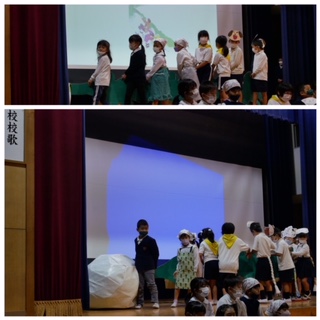 まず1年生の「大きなかぶ」の劇でスタートです。