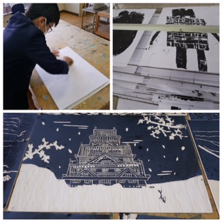 6年生が版画を刷るということをきき図工室を見にいきました。日本の建物がお題ということです。見に行った頃にはおおむね作業が終わってしまっていたので作品鑑賞になってしまいましたが力作ぞろい。熱心に制作に取り組んだことが強く伝わってきました。