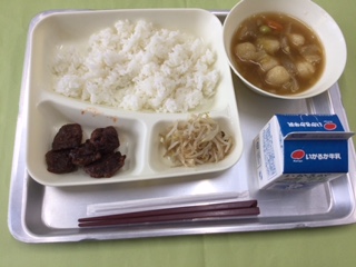 今日の給食は くじらのオーロラ煮 まる天と野菜のうま煮 もやしのピリ辛あえ ご飯 牛乳 の献立でした。「オーロラ煮」は時々給食に登場しますが、ケチャップと砂糖とあかみそで味つけをします。不思議な取り合わせですが相性よいです。