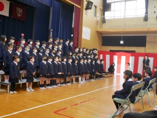 令和5年度の入学式をとどこおりなく行いました。ご来賓も招き、新2年生の歓迎の歌や言葉もあり、あいにくの雨模様を忘れさせる、とても心温まる素敵な入学式であったと思います。楽しいことがありすぎて何からお家の人に話そうかこまってしまう。ぜひ、そんな小学校生活になってほしいです。そのために教職員一同、力を合わせて頑張る決意です。保護者の皆様、ご理解とご協力をお願いいたします。地域の皆様、お力添えをお願いいたします。(校長 式辞は こちら)
