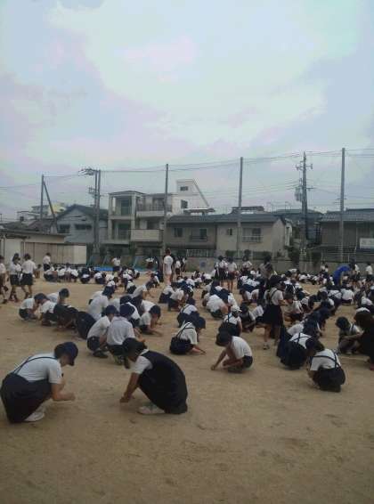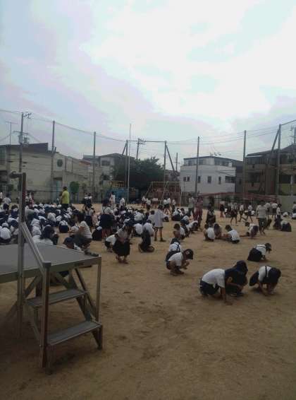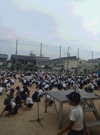 まずは、ソフトボール大会や図工作品で優秀な成績をおさめた人たちの表彰。その後、運動会に向けて「石ころ」拾い。