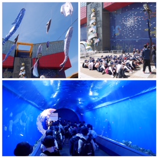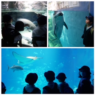 今日は3年生の春の遠足です。海遊館に来ています。少し海風が強いですが絶好の遠足日和。気持ちよい青空のもと大阪港駅から海遊館までテクテクと歩きました。今日も海遊館は大人気でたくさんの小学校が遠足で訪れていました。いつ来ても見応えがあります。大きな魚、可愛いイルカやアザラシなどの海獣類。不思議なクラゲ。みんな満足だったと思います。良かったです。