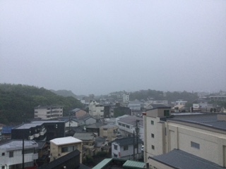 さて、今日は予報通りの雨です。写真は宿舎の窓からみた白浜温泉の市街地方面。しかも、大雨警報が発令されました。陶芸体験は屋内、三段壁洞窟は洞窟の中ですので雨の影響は少ないと思われますが、屋外の白良浜での朝の集い(とても気持ちが良いのですが)、千畳敷の散策(紺碧の海の美しさに圧倒されるのですが)は、残念ながら実施できないです。今後、大雨の情報は慎重に得ながら、安全を最優先に半日の現地での活動を進めていきます。