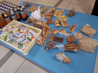 惣菜パンとジュースは避難所そばの地元のパン屋さんが子どもたちがかわいそうだからとのことで差し入れをしてくださいました。人の優しさが身に染みます。保護者の皆様には重ね重ねご心配をおかけして申し訳ない思いです。