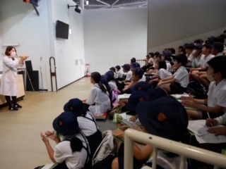 準備してくださったお弁当をいただいた後は、サイエンスショーです。今日のテーマは重心探し。さまざまなものの重心を見つけていきます。缶を立てたり、さまざまな調理器具を重ねてバランスをとってみたり。しばらく、お家で挑戦することがブームになるかも知れません。みんな、こぼしたりこわしたりしない程度に楽しんでください。充実した社会見学でした。
