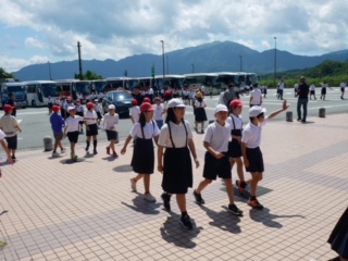 毎年のことではありますが、サービスエリアは大阪市の学校でいっぱい。昨年度の6年生の担任の先生に久しぶりに会えたり、ちょっとした交流会でした。やや雲が多いですが晴天です。暑いです。ここから標高が上がっていくと少しは涼しくなるのかな。