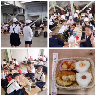 高原ですがなかなか暑いです。今年もハチ高原に戻ってきました。青い空山の緑のコントラストが美しいです。仲良くお弁当をいただき腹ごしらえ。この後、午後の活動は「魚つかみ」です。さあ、上手に捕まえられるかな。捕まえた魚はじっくり自分で炭火焼き。アマゴの塩焼き。楽しみです。