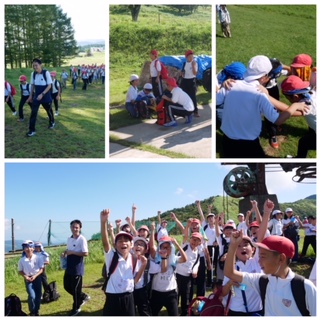 達成感です。全員がリタイヤすることなく鉢伏山の登頂を達成しました。登り始め、慣れない登山に弱音が次々に。しんどい、暑い、登りたくない、もう嫌などなど。ところが、励まし合い、助け合い、それぞれがガッツを出し、ペースこそさまざまではありましたが、全員が山頂に立つことができました。下の2枚が山頂での写真です。子どもたちの達成感を共に感じていただければと思います。この4年間で初めて少し低い高丸山ではなく鉢伏山にチャレンジしました。チャレンジしてほんとうに良かったです。