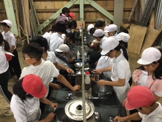 みんなで美味しくいただいた後は、野外炊事お決まりの苦労も体験です。鍋のすす落とし。これが頑張っても頑張ってもなかなかとれません。一生懸命に鍋をこすり洗いするところまでが野外炊事です。
