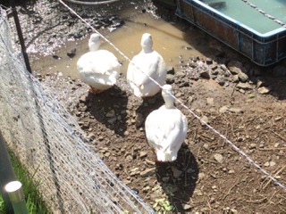 グリーンロッジに5年生たちと来るようになって4年目、いつも再会をなつかしんであいさつを交わすことにしている烏骨鶏(ウコッケイ)さんとアヒルさん。ずいぶんと数が増えて大きくなりました。