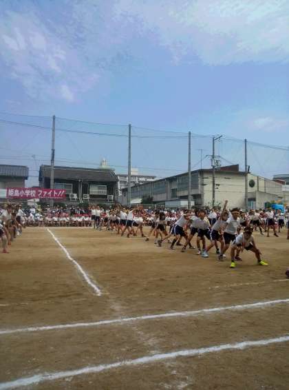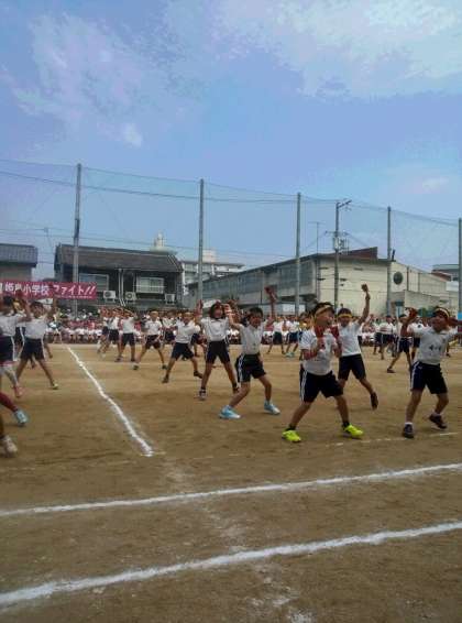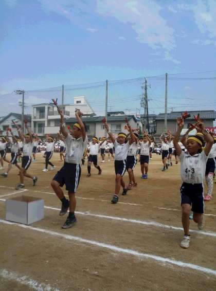 4年生ダンス。鳴子の音が運動場に響き渡っていました