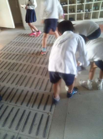 紙コップを利用して作ったおもちゃ。風の力でどのくらい動くかな?