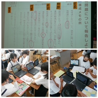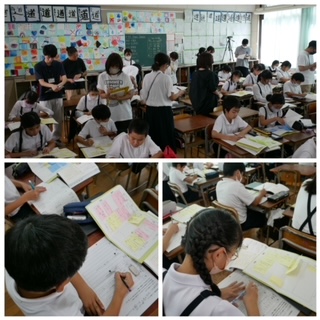 先週の事前授業(プレ授業)からの改善のための検討を経て、今日は5年生で研究授業をおこないました。最終的に環境問題についての報告書(新聞)をまとめるための「構成メモ」をつくる活動とそれについての意見交換の活動が2つの大きな活動です。たくさんの先生が観にくる中、とても緊張したと思いますが、子どもたちはとても頑張って取り組んでいました。この後、今日の授業について先生たちで話し合いの時間を持ちます。さあ、どのような話し合いになるでしょうか。先生たちも子どもたちも学びのよろこびを感じられるような毎日に結びついていきますように。