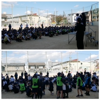 ●服装 上=体操服の上に標準服の上着(ゼッケンがあるため)、防寒着可 下=体操ズボン(上からスカートをはく 長ズボンも可 長ズボンをはく場合はスカートの着用なし) 名札はつけない 赤白帽を着用