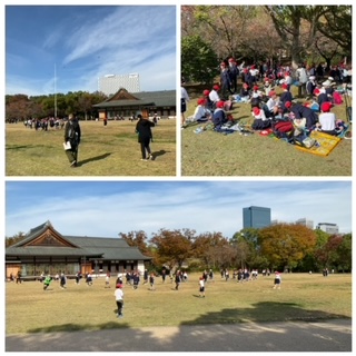最高の遠足日和になりました。空は晴天。寒いどころか汗ばむ陽気。広々とした西の丸庭園の芝生広場。のびのびとした気持ちで1日を過ごすことができました。お弁当も美味しい。たてわり班の活動でリーダーは大変だったと思いますが、6年生とてもよく頑張っていましたよ。頼もしかったです。けっこうたくさん歩いたので学校に帰りついた頃はへとへとかもしれませんね。でも、それはきっと心地よい疲れだと思います。良い1日でした。