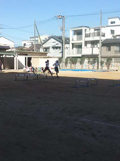 学習のまとめとしてハードル走のタイムを計りました。どれくらい伸びたかな?