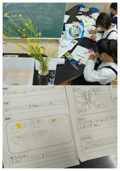 実験に使ったアブラナは、昨日に担当の先生が淀川まで足を運び採ってきたものです。図鑑や画像でない“ホンモノ”に触れることも教育の重要な意義です。