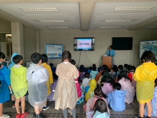 大阪市で行われている高度浄水処理(オゾン処理や粒状活性炭処理)についての説明を聞いています。