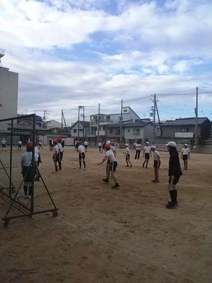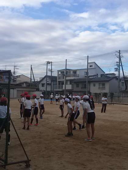 明日、6年生はスポーツ交歓会に参加します。陸上競技や球技にチャレンジします。明日に備えて、サッカーの練習
