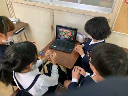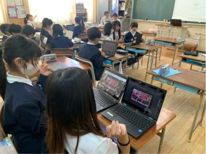 4年生は学習発表会に向けて、手話をしながら歌を歌うことにチャレンジしています。グループになって動画を見ながら楽しく練習していました。