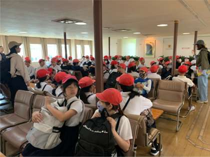 船が動き出しました。3階立ての船内を自由に動き回ることができて、子どもたちは大興奮です。