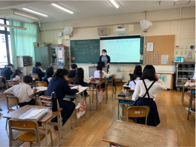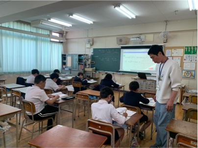 5年生の算数科、習熟度別授業の様子です。小数のかけ算の学習をしています。