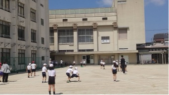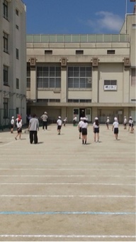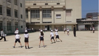 4年生のソフトボール投げの様子です。先生たちが昨日の放課後にソフトボール投げのラインを準備しました。