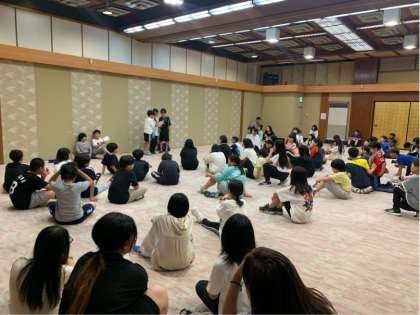 今日の最後にレクレーション活動で身体を動かすゲームをしました。レクレーション担当の人が司会をして、楽しく盛り上がりました。