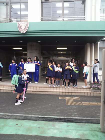 今週は児童会主催「あいさつ運動」です。児童会の皆さんが玄関で元気よく挨拶をしてくれました。また、今日から2日間、西淀中学校2年生の4名が職場体験に来ています。色々なことを体験して将来の職業について考えを深めてほしいと思います。