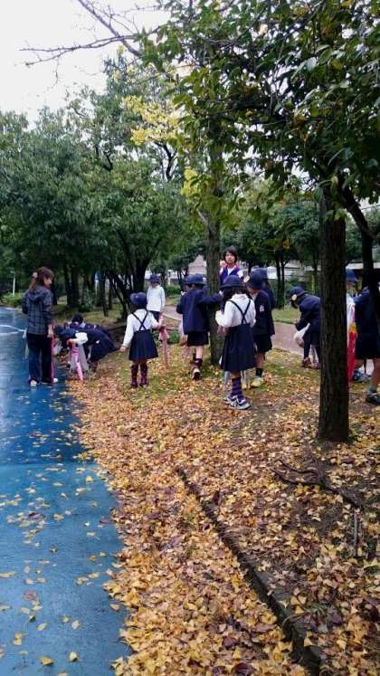 生活科の学習で、緑陰道路に秋見つけへ行きました。