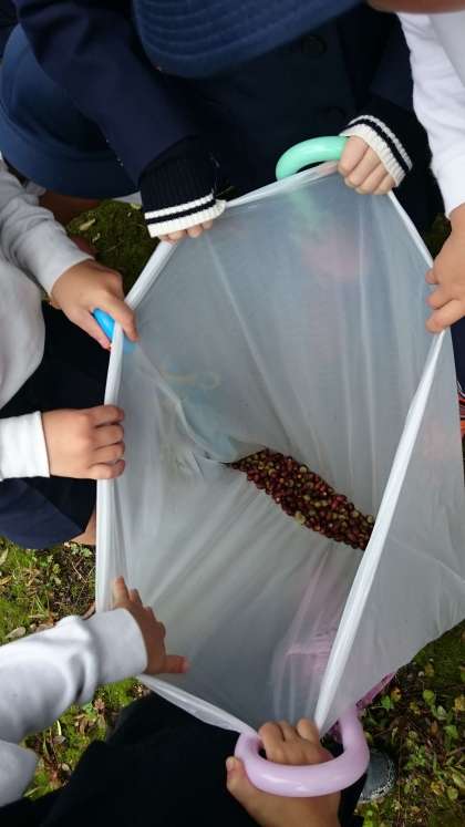 子どもたちは、「秋がいっぱい」「ドングリ屋敷」と大興奮していました。