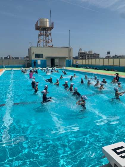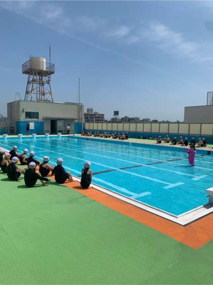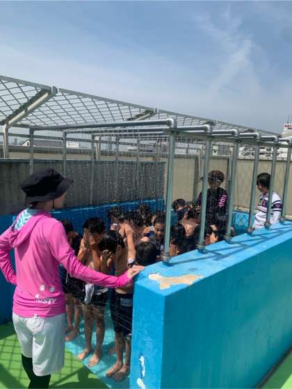 今日からプール水泳が始まりました。昨日は雨天だったので、1番乗りは3年生です。