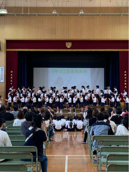 3年生は音楽発表をしました。茶摘みを歌いながらの手遊びやリコーダー演奏を披露しました。