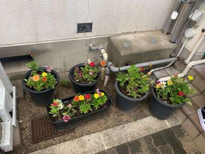 7月に入り、花壇には色とりどりの季節の花が咲いています。