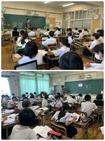 国語の授業で、接続詞を使って、文章を作る学習をしていました。