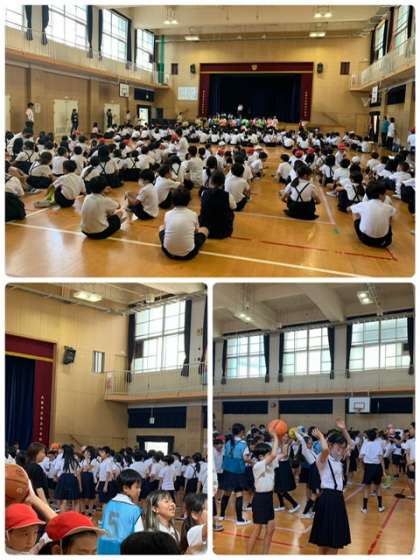 今日は2学期初の児童集会がありました。縦割り班で、ボール送りゲームをして盛り上がりました。