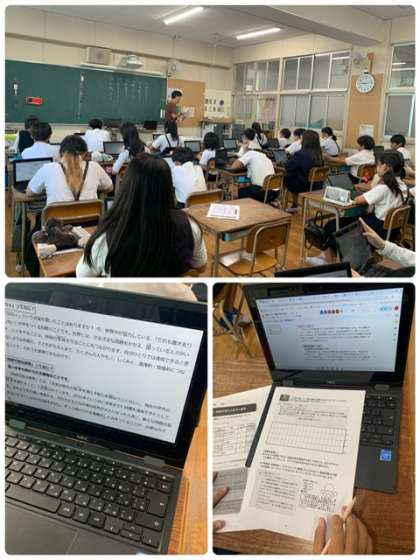 6年生の総合的読解力の授業です。タブレットに保存したデジタルテキストで学習しています。