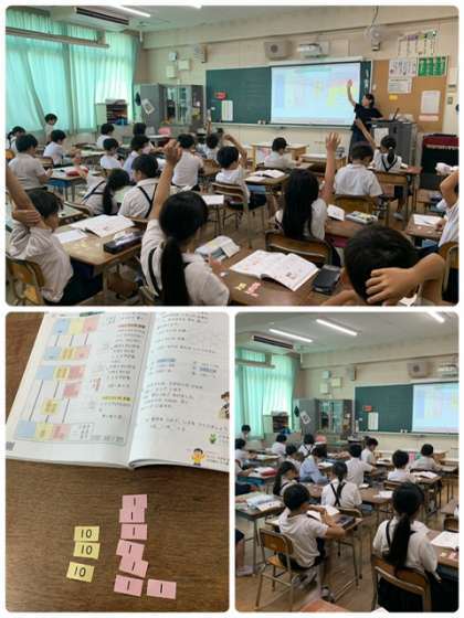 2年生の算数の授業です。数字カードを操作しながら、筆算の学習をしていました。