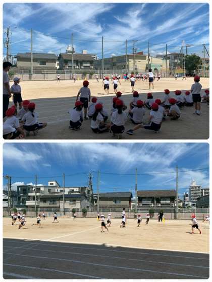 2年生の体育の授業です。今日と明日、中学生がキャリア教育の一貫で、職業体験に来てくれています。赤白に分かれて、それぞれの鬼ごっこに加わってくれました。子どもたちの歓声が沸きました。