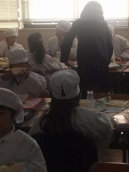 今日は、いつもの給食時間と違って、兄弟学年で給食を食べました。はじめは、みんな緊張気味でしたが、すぐに打ち解け、楽しく給食を食べることができました!(^^)!