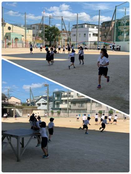 さわやかな秋晴れになりました。子どもたちは運動場で元気に身体を動かしています。