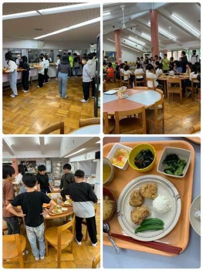 お昼ご飯の時間になりました。今日のメニューは唐揚げ定食でした。活動班で手分けをして準備をしました。