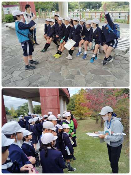 オリエンテーリングが始まりました。先生たちが用意してくれているポイントを探して回ります。班の人と協力して、ゲームやクイズにチャレンジしました。
