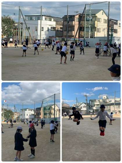 給食を食べて、子どもたちは元気に外で身体を動かしていました。