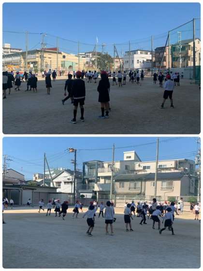 気候が良くなったので、運動場に出て遊ぶ子どもが一気に増え、歓声が響いています。